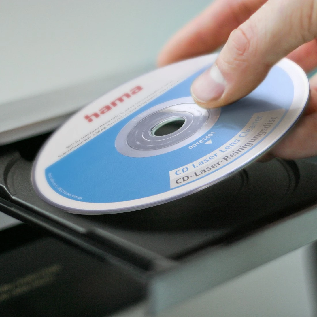 Insert the cleaning disc into the player like a normal disc. Make sure that the arrow on the cleaning disc points to the aperture of the drive drawer.